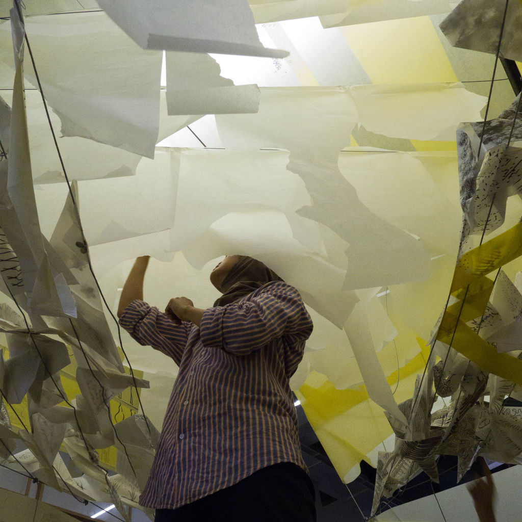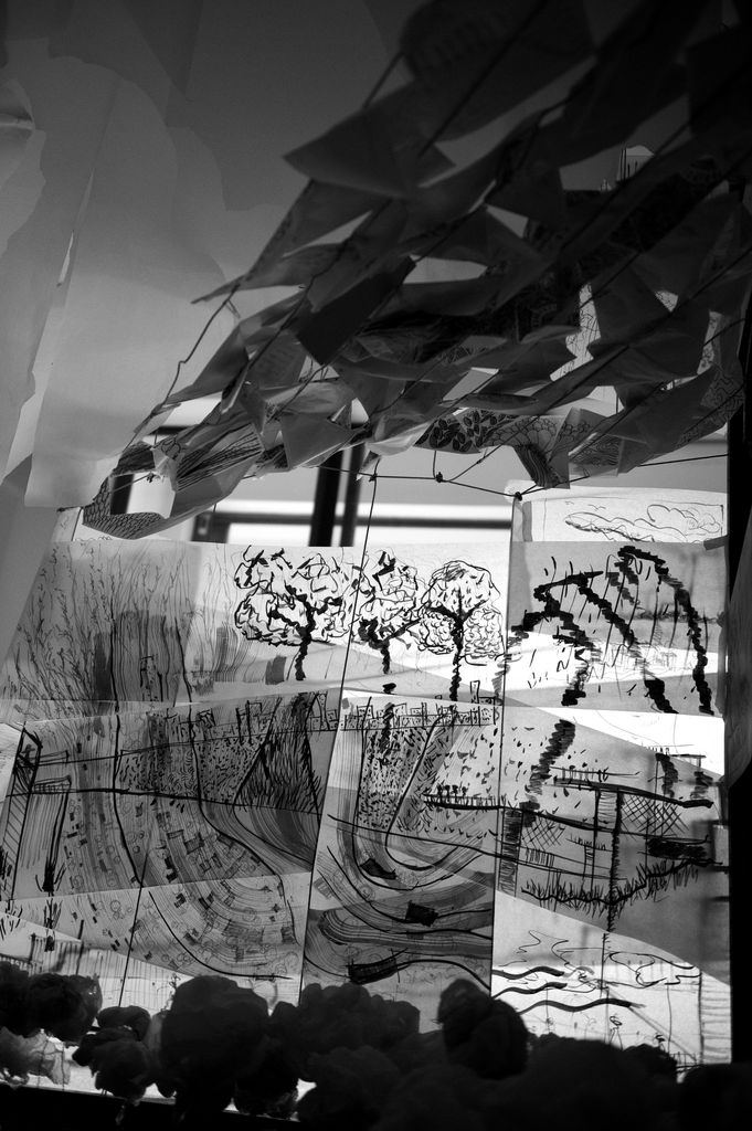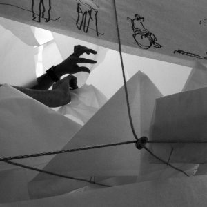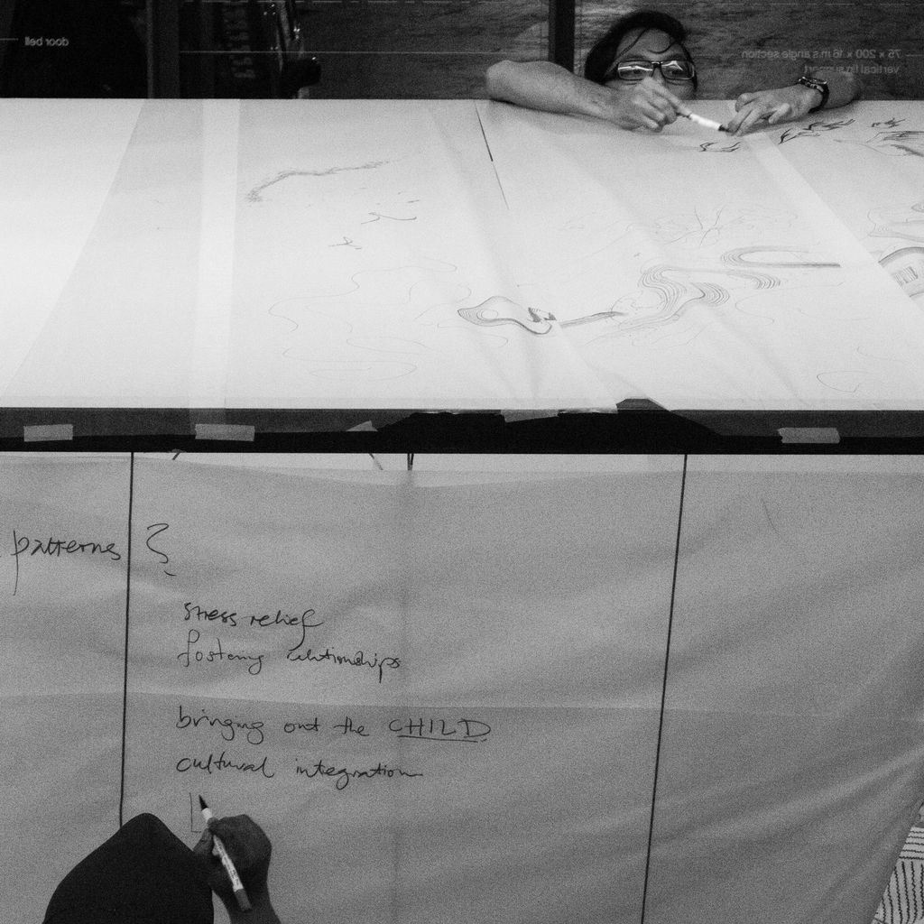 The pen/pencil is the extension of one’s mind. A line is drawn on a drawing and the dialogue continues with overlapping sketches which manifests itself to the form of architecture. The sketch box consists of a 2m x 2m x 2m cube, wrapped in paper, forming a blank canvas. All members of C’arch were invited to contribute to this canvas based on ideas and questions surrounding a live project encompassing a care home and independent living units for the elderly. Over the days, large statement-making drawings as well as little tongue in cheek sketches appeared, allowing new stories to develop from the different views of the issue at hand. The extension of this exercise was the continuation of the sketches by the public during the exhibition, creating a coincidental overlapping dialogue and interchange of ideas that could perhaps ensure that architecture for the elderly is meaningful and dignified.