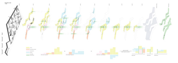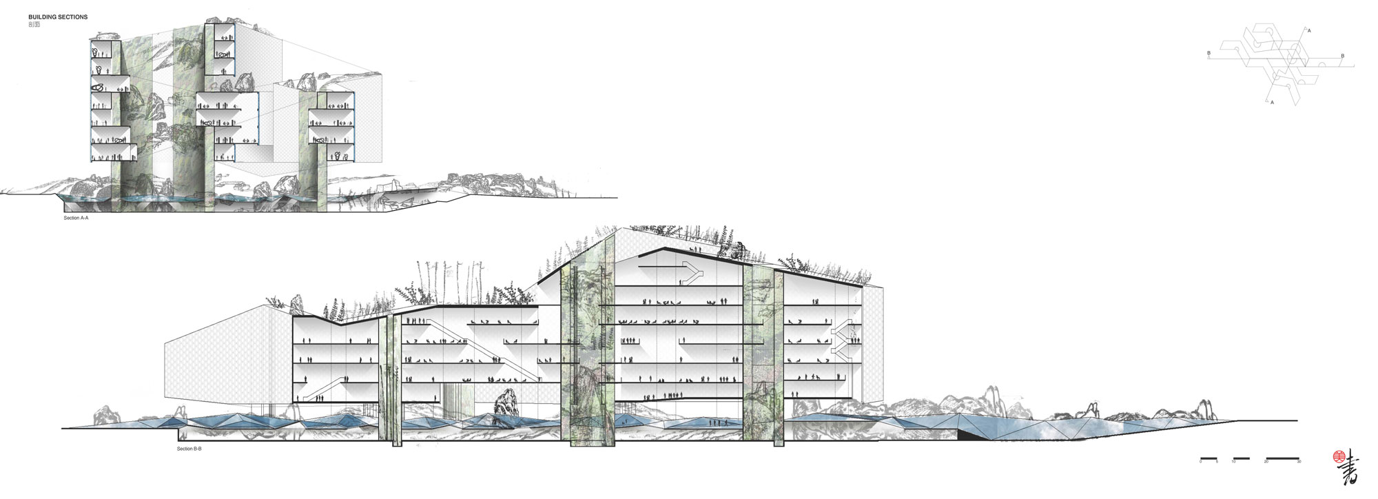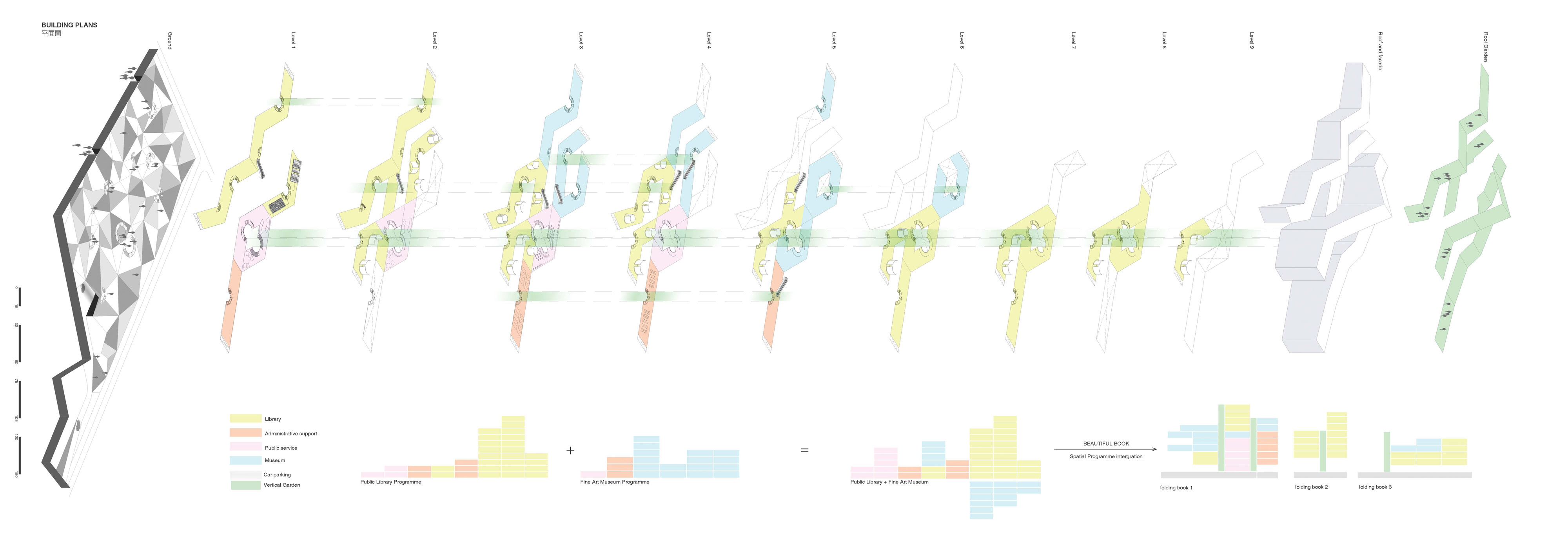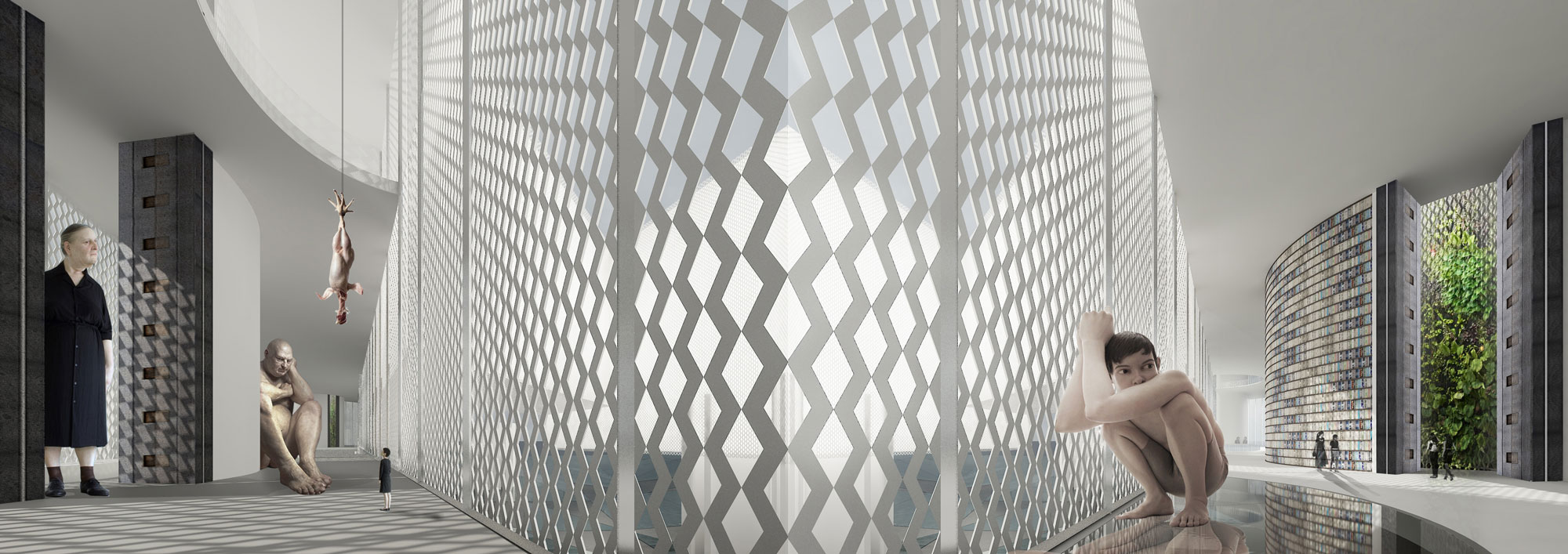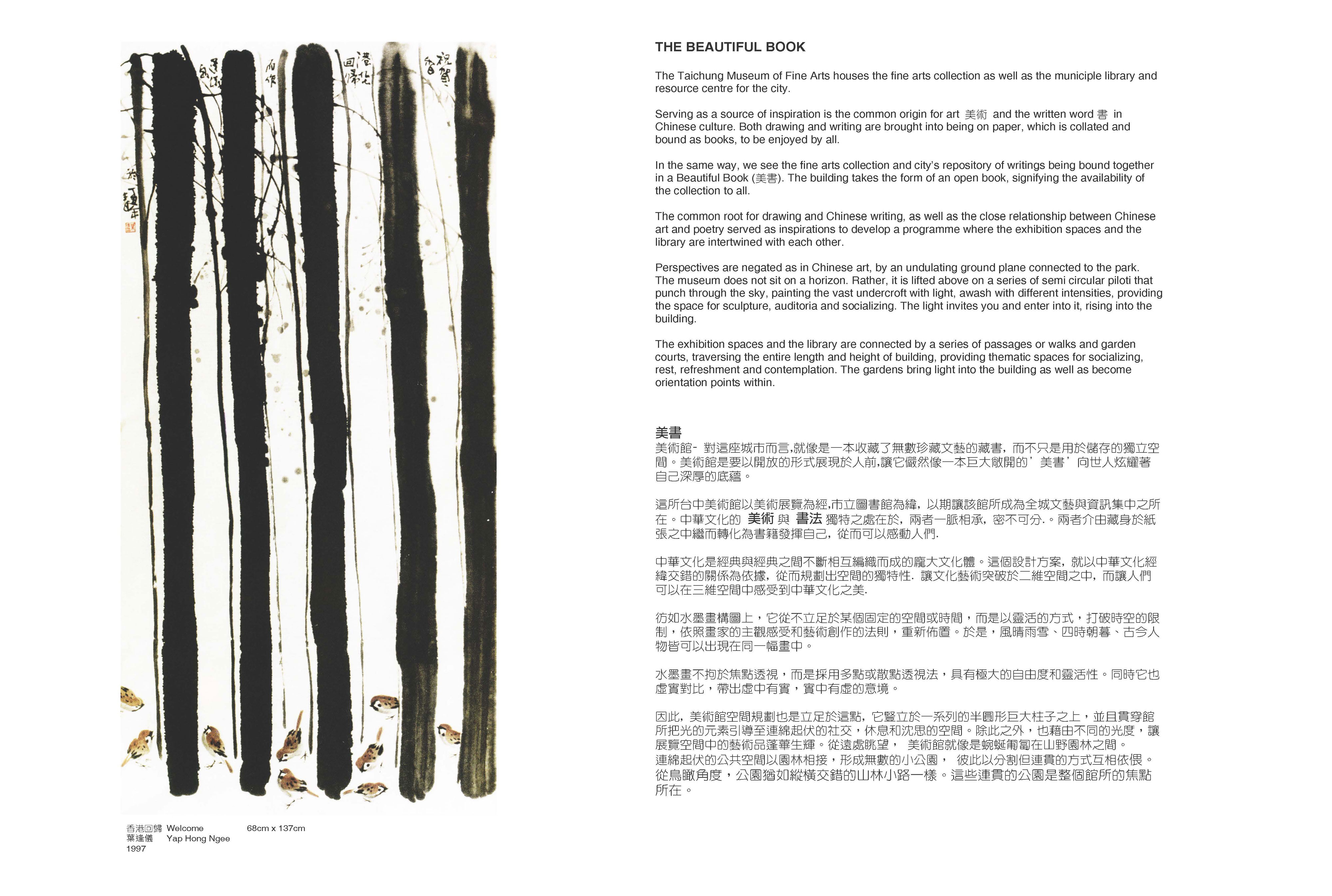 Mr Yap's ink-brush paintings of abstracted spaces populated with flora and fauna provided the vocabulary for our spatial intentions of a building that is an open repository of Taichung's art and written culture. His "dream time" writings and sketches describe the feelings and experiences available to all who will visit the building, from exhibition halls, sun-lit cores to viewing galleries overlooking the parks around.