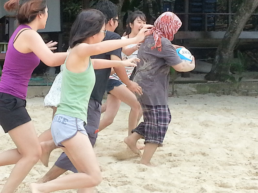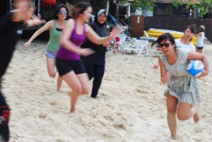 The violence rugby session, being thrown into the sea, snorkeling in the wonderful weather, kayak and catching the jellyfish, sand & water volleyball session, the extremely salty swimming pool...and not forget the 'hands' drinking game.