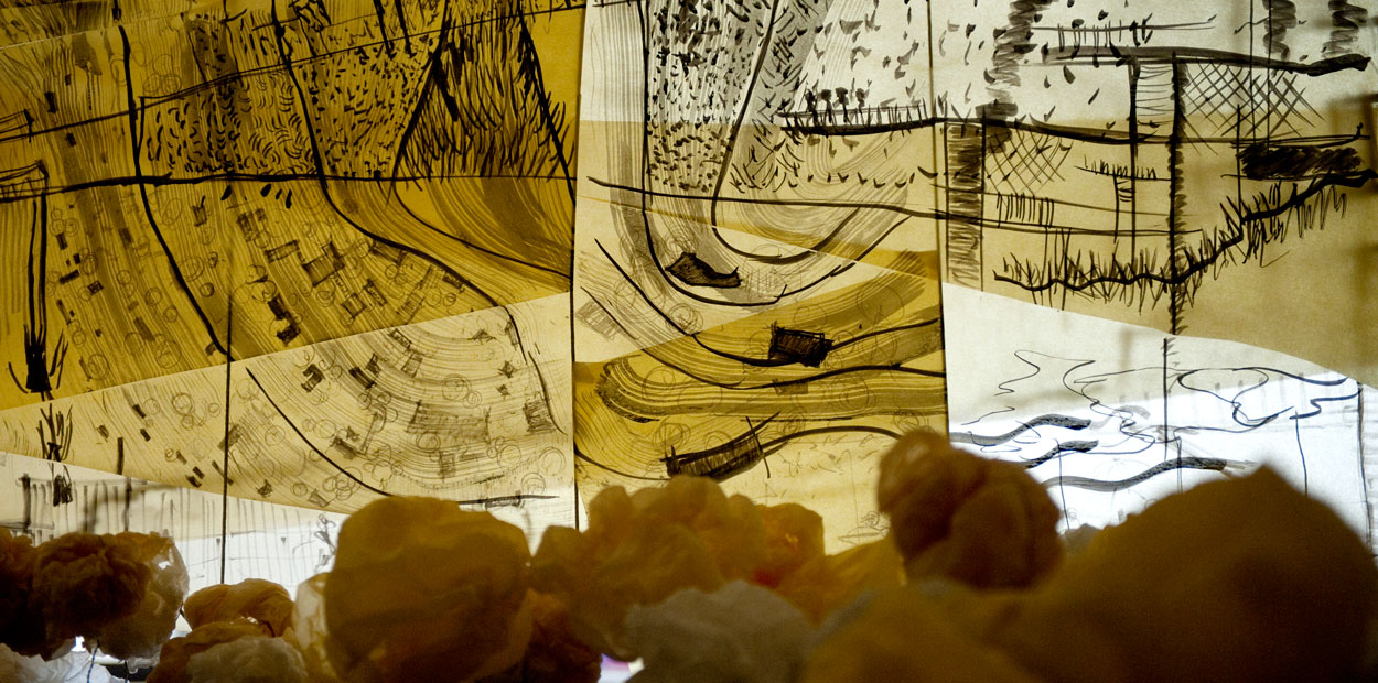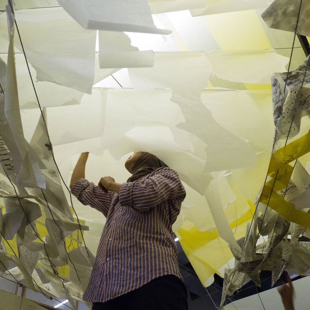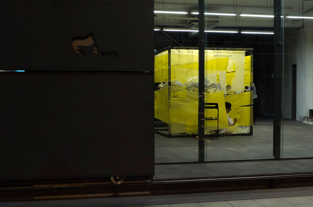 The pen/pencil is the extension of one's mind. A line is drawn on a drawing and the dialogue continues with overlapping sketches which manifests itself to the form of architecture. The sketch box consists of a 2m x 2m x 2m cube, wrapped in paper, forming a blank canvas. All members of C'arch were invited to contribute to this canvas based on ideas and questions surrounding a live project encompassing a care home and independent living units for elderly. Over the days, large statement-making drawings as well as little tongue in cheek sketches appeared, allowing new stories to develop from the different views of the issue at hand. The extension of this excercise was the continuation of the sketches by the public during the exhibition, creating a coincidental overlapping dialogue and interchange of ideas that could perhaps ensure that architecture for the elderly is meaningful and dignified.