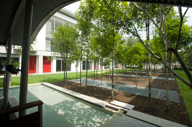 This three-strorey low density luxury condominium comprises two sets of dwellings placed on two contiguonous land parcels, each grouped around its own planted garden deck which conceals as well as brings natural light and trees to the car park below. The buildings were designed to offer a tropical home within an urban context.