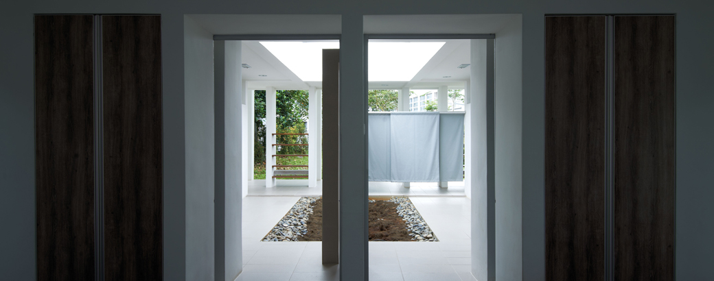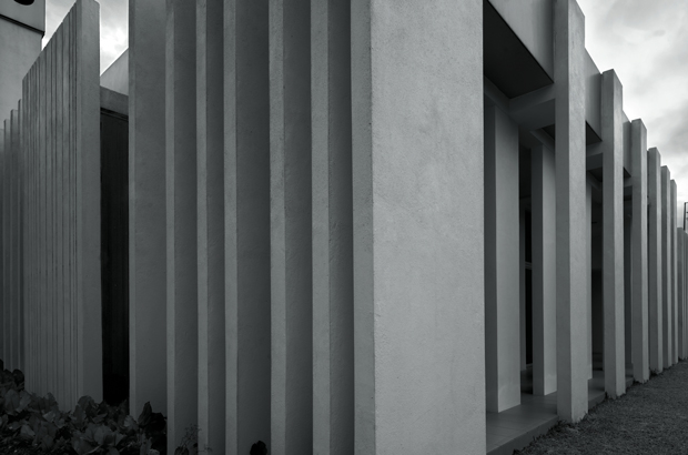 Conceived as an eloquent and simple shelter within a garden, the plan is a composition of uni-directional walls. The walls vary in length to enclose and create spaces, form stores, create openings, whilst sometimes dissolving into layered screens.