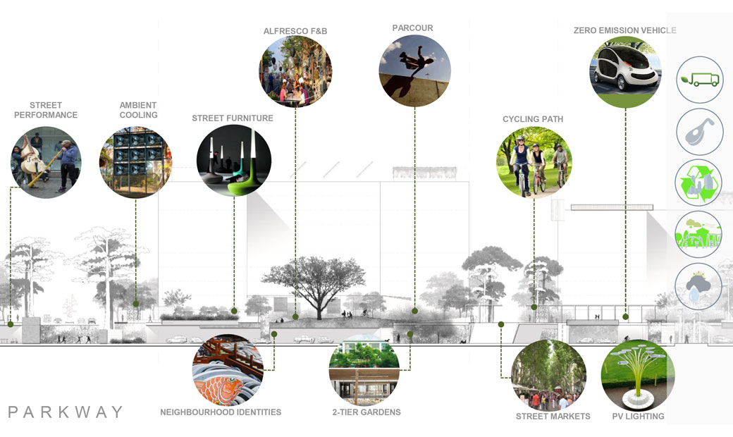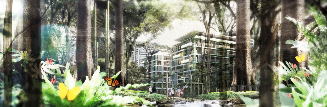 The landscape vision is to create a series of distinct neighbourhoods that draw their inspiration and character from the existing habitats found in Sabah; the rainforest, mangrove and heath forest. The key strategies shall be expressed in keeping with each of these neighbourhoods capturing the inner qualities of these habitats and in turn providing legibility to the master plan.