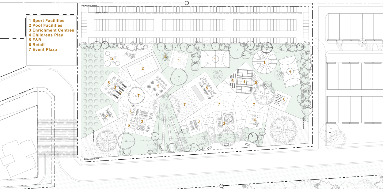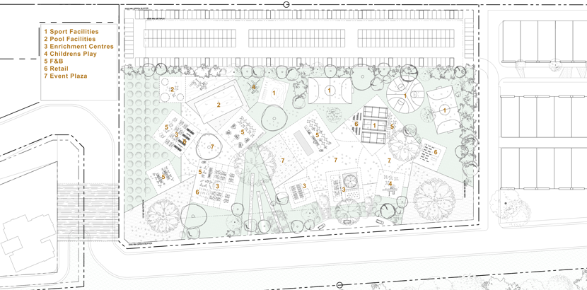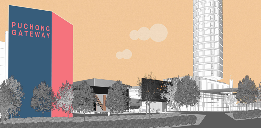 Puchong Gateway is a non tabula rasa masterplan proposal with strategies on design improvements for an existing under-thriving development. The main approach was to define its identity and address the high vacancies and non-friendly atmosphere, scarcity of landscaping and lack of distinction within its context. The Village, Town Hall and The Design Hub are three components proposed on the elongated site as catalyst to create an aspirational lifestyle environment and sense of ownership for the community via collective branding.
