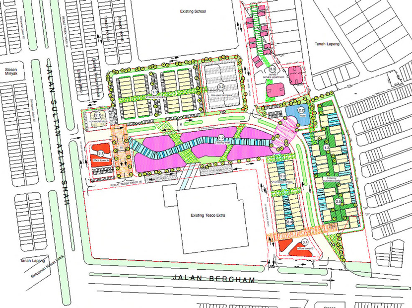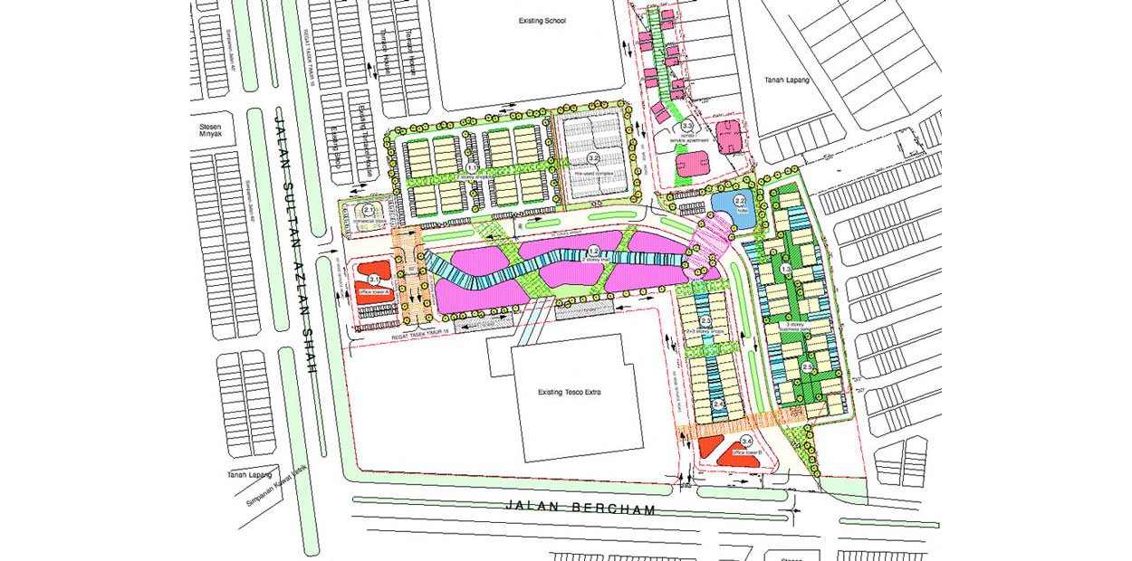 A masterplan for a 30 acre mixed development comprising of a retail mall, commercial units, offices and residential units.