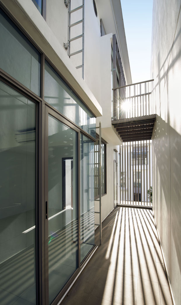 The typical Malaysian terrace house has a deep and narrow foortprint, dictated by commercial pressures to maximise density. The limited external facades (front and back) result in a dim and poorly ventilated space at the centre of the house.