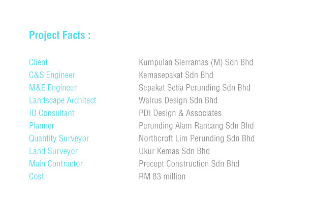 This is a private enclave comprising 41 villas within the exclusive Sierramas residential development.These elegant 3-storey family homes range from 5,600 to 7,000 sq. ft, with features that cater for multi-generations like a home-lift as well as an annexe suite.Each villa design is rooted in the concept of sustainability, e.g. provision of optimal day-lighting and natural ventilation, as well as rain water harvesting system.Beyond each villa’s private garden is a landscaped common garden with a footpath that connects the houses to the clubhouse and swimming pools.