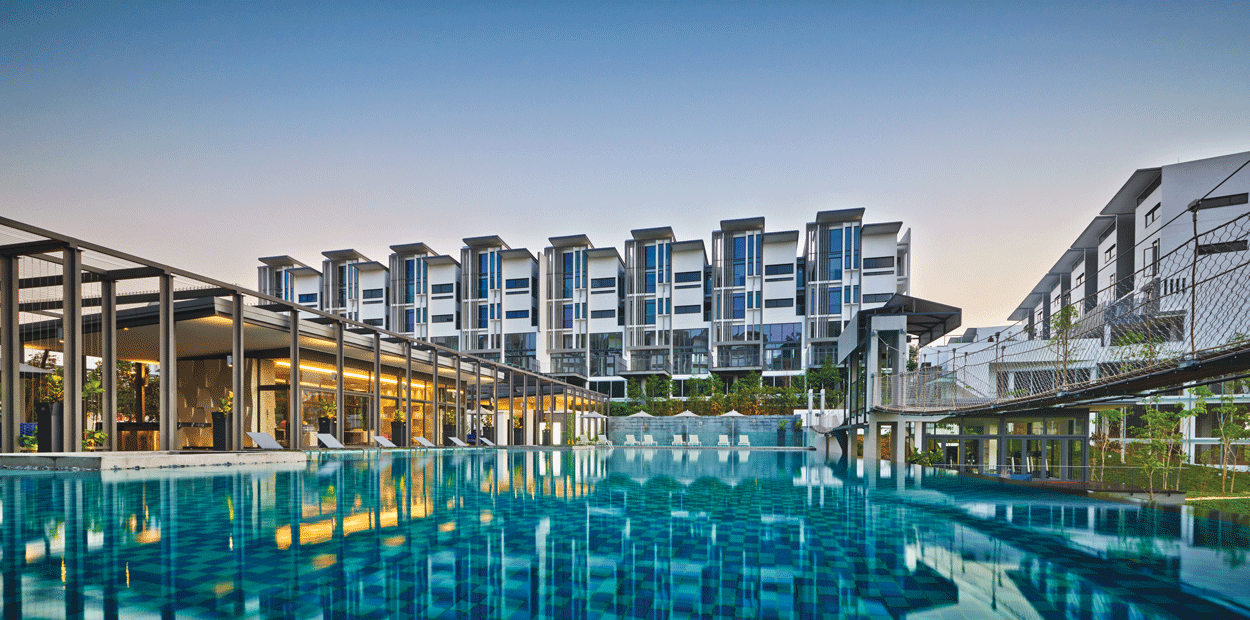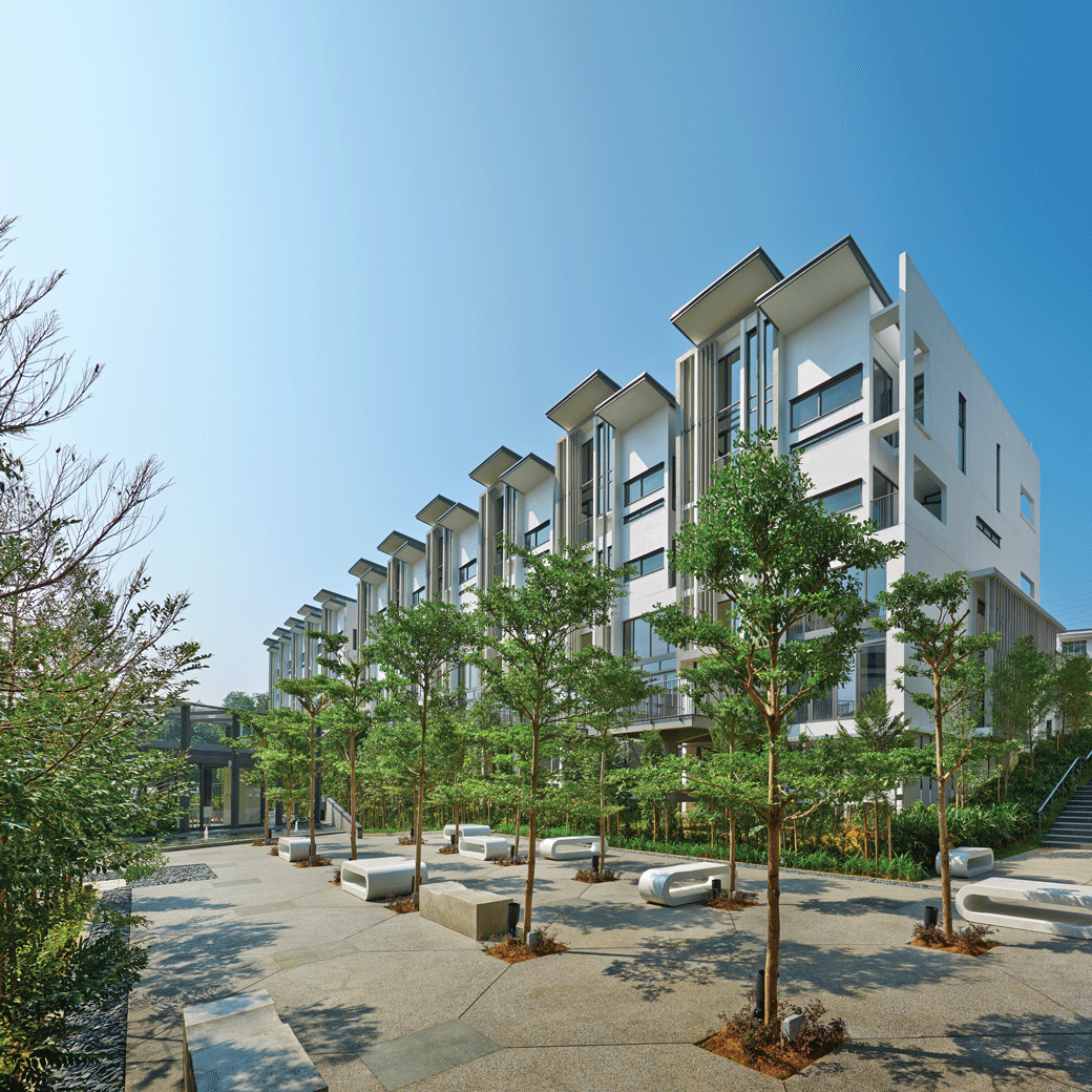 This development comprises 127 2 1/2 to 3 1/2- storey strata homes within a gated and landscaped compound with a clubhouse, pool and other common amenities.The master layout plan was conceived to foster the ideals of community living and place making.The central spine of the development is punctuated by a pool which becomes the focal point for the entire community.The residences are vibrant, light filled and airy spaces with distinct public and private zones.