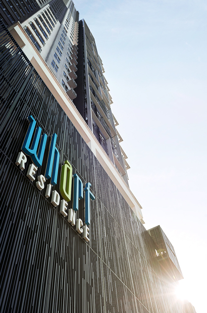The Wharf Residence is a 1,002 unit condiminium integrated within The Wharf. Its 3 towers provide a variety of product sizes, offering convenient modern living with vistas of the surrounding lakes.