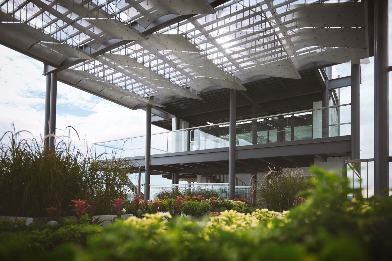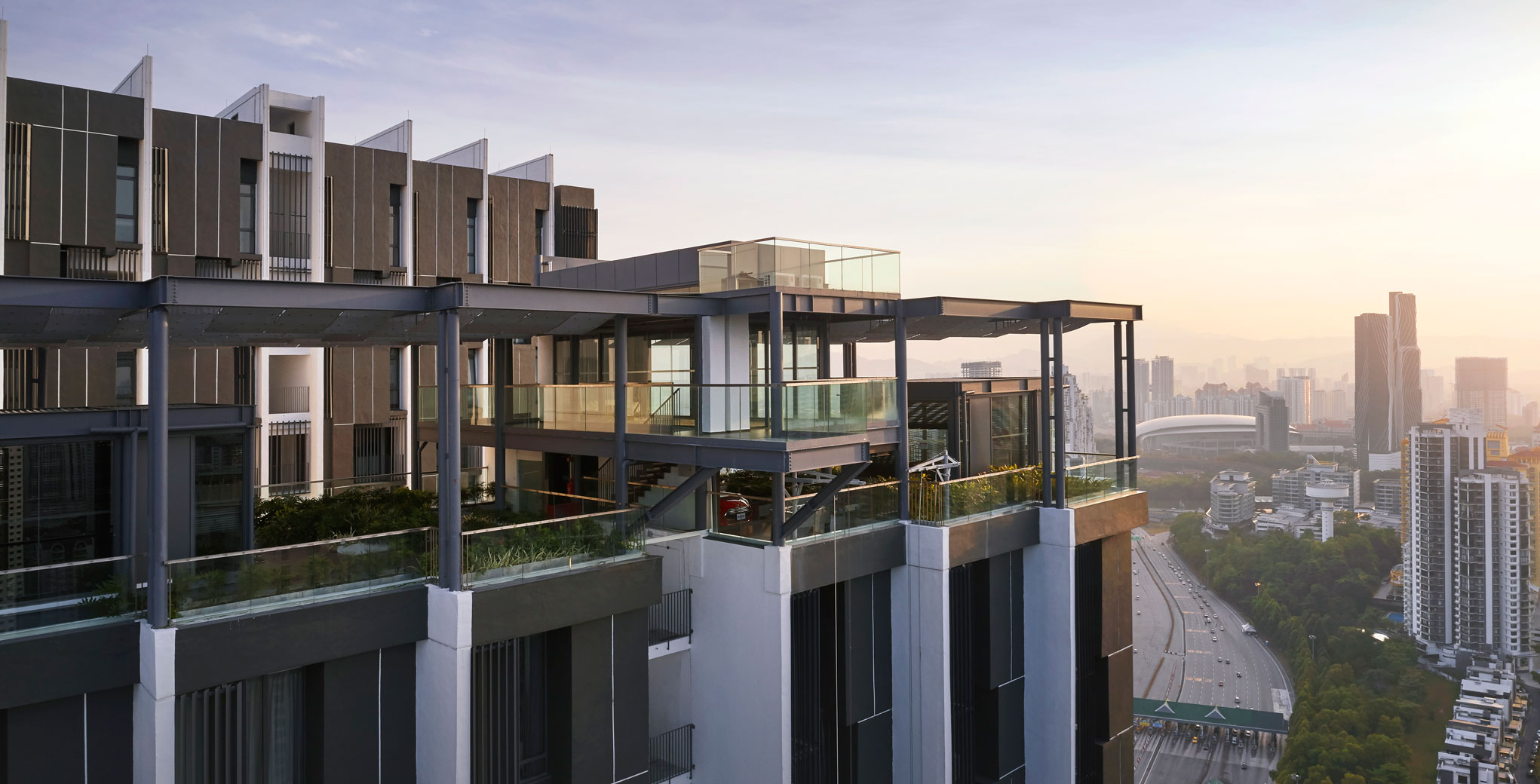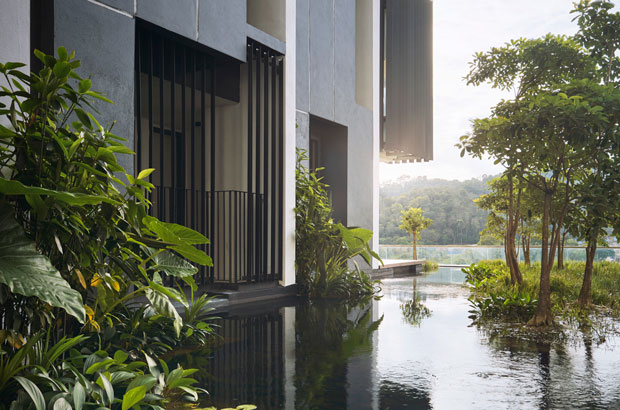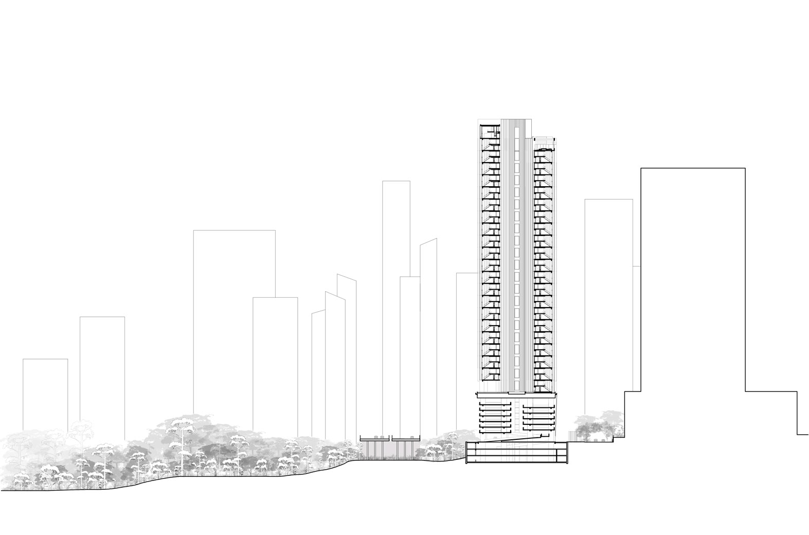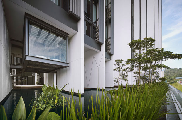 The tower is positioned on top of a 0.9 acre self-cleaning bio-filtration pool which forms a waterscape of reeds and wetlands amongst the swimming pools. The rippling surface of this water body not only creates a serene, yet dynamic canvas to place its various facilities such as the gym, swimming pools, cabanas and various communal and private waterside terraces, but it also facilitates evaporative cooling to these spaces.